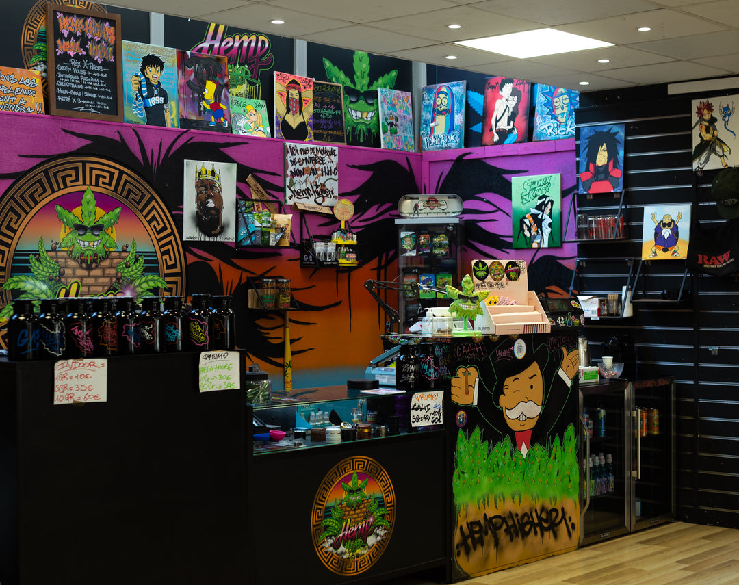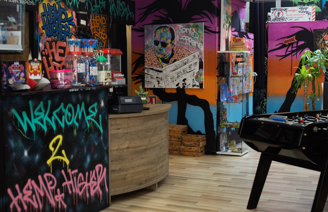 Ce qui rend notre concept vraiment spécial, c'est l'attention que nous portons à l'art et au design. Nos magasins sont conçus pour vous offrir une ambiance originale et stimulante, où les couleurs vives et les créations artistiques s'harmonisent parfaitement avec notre sélection de produits CBD de premier choix.